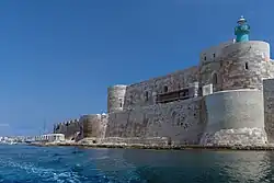In October the allied force sailed from Patti, leaving a substantial garrison behind to occupy the city. James planned to embark on a major campaign to capture Syracuse, a large port in eastern Sicily, and eventually use the port to maintain his fleet through the stormy Mediterranean winter months. The allied army and fleet besieged the city in late October, landing troops to the north and south of Syracuse. However, the heavy-fortified city refused to surrender and Lauria's fleet was unable to take the formidable Castello Maniace by sea. With Syracuse besieged, the allies conducted a limited push inland, capturing the towns of Sortino, Ferla, Palazzolo and Buscemi before an attempt to seize Buccheri was thwarted by armed townspeople.[2] The allied advance quickly dried up and a protracted siege of Syracuse began.[2]