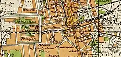 Initially, the line from Batavia Zuid Station headed to Angke was built via Jalan Pasar Asemka.[7] When a new route was made from Angke which made a detour through the Kota Intan and Kampung Bandan areas, the route from Batavia Zuid Station to Jalan Pasar Asemka was cut off.[7] Then, a station was established on Jalan Pasar Asemka which was named Pasar Pagi Station, this station is used as the initial point of departure for passenger trains heading to the Tangerang Station.
