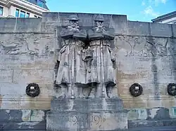 The Anglo-Belgian War Memorial (French: Monument aux Soldats Britanniques; Dutch: Monument voor de Britse Soldaat) is a monument in Brussels, Belgium, which was commissioned by the British Imperial War Graves Commission and designed by the British sculptor Charles Sargeant Jagger. Unveiled in 1923 by the Prince of Wales, it commemorates the support given by the Belgian people to British prisoners of war during the First World War.[1] It is located on the Place Poelaert/Poelaertplein near the Palace of Justice and the Belgian Infantry Memorial.[2]