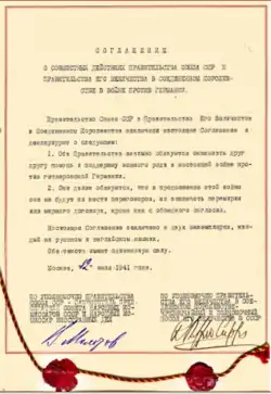 A twenty-year mutual assistance agreement, the Anglo-Soviet Treaty was signed in May 1942, reasserting the military alliance until the end of the war and formalizing a political alliance between the Soviet Union and the British Empire for 20 years.