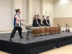 Kazenodaichi Taiko, a Taiko ensemble based at Bowling Green, Ohio performing at a convention organized by a university Anime Club