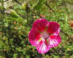 Anisodontea is a genus of flowering plants in the tribe Malveae of the mallow family Malvaceae. It comprises 19 species native to South Africa and Lesotho.[1] Members of the genus typically bear toothed leaves with three or five palmate, uneven lobes. Members of the genus also typically bear flowers with a pubescent calyx, a five-petaled corolla streaked from the center and pink to magenta in color, and stamens with anthers of a dark color.