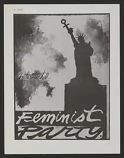 Steckel began showing her work in both solo and group exhibitions beginning in the late 1960s.[6] Her first publicly recognized work, a photomontage series titled "Mom Art" in 1963, included critiques of racism, war, and sexual inequalities.[3][8] In her "Giant Woman" series of works, Steckel painted oversized nude women onto photographs of city scenes, an idea associated with a Women's movement theme that women had "outgrown their roles" in society as previously defined.[9] In 1972, her work was exhibited at the Women's Interart Center in New York alongside pieces by the influential feminist artists Judy Chicago, Miriam Schapiro and Faith Ringgold.[10][11]