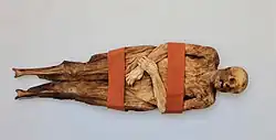 A first examination in 1976 by anthropologist Bruno Kaufmann revealed that Mercury sulfide (found in the whole body, especially in the lungs), prevented decay and was responsible for the mummification. Atmospheric conditions within the coffin and grave chamber also prevented microbes from breaking down the corpse.[3]