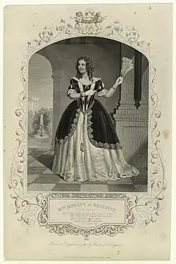 In 1845, her best-known work, the play Fashion[6] was published. It received rave reviews and opened at the Park Theatre, New York, on March 24, 1845. On June 13, 1845, she made another career move to acting, she debuted at the Park Theatre as Pauline in The Lady of Lyons with great success.[7] Although her next play, Armand, was published in 1847, and also received good reviews, she continued in her acting career. She performed leading roles in Shakespeare (for instance, in a production of Cymbeline in London, 1843), melodramas, and her own plays. She toured the United States and Europe for the next eight years.[2]