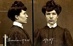 In May 1912, police discovered that Dondon had been seen at a villa in Nogent-sur-Marne. They managed to confirm that she and Vuillemin had been at the villa, but could not confirm the presence of Valet or Garnier.[16] A police report described Dondon as "a little dumpling, very brown and somewhat creole, artistic-looking, with her hair in ringlets and wearing a bandana."[17] By the time the police raided the villa, Dondon was no longer there.[18] She had since left the villa and gone to Garches.[19] Meanwhile, Valet and Garnier had been killed during the police raid.[1] Due to poor health, Dondon was forced to stay in Paris, where she was arrested on 14 May and taken in for questioning by the Sûreté.[20] However, while other gang members went on trial, Dondon was never charged with any crime.[21]