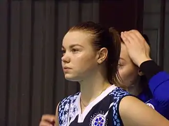 Anna Mikhailovna Kotikova (Russian: Анна Михайловна Котикова; born 13 October 1999) is a Russian volleyball player, who plays as an outside hitter for the Russian club Dinamo Kazan and the Russian women's national volleyball team. She has won gold medal at the 2016 Women's U19 Volleyball European Championship and silver medal at the 2017 FIVB Volleyball Women's U20 World Championship with the youth teams of Russia while being selected as the "most valuable player" at the former.[1] In both tournaments, she played in the opposite position and was named the "best opposite spiker" of the tournament.[1][2] She has won the Russian Cup with her club in 2017.[3]