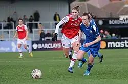 In May 2017, Miedema moved to English club Arsenal.[27] On 29 October, she scored her first goal in the FA Women's Super League (FA WSL) for Arsenal in the match with Everton in the 23rd minute.[28] During a match against Liverpool, she scored the game-opening goal in the 29th minute and provided the assist to Dominique Janssen's goal in the 49th minute lifting Arsenal to a 3–0 win.[29] Miedema finished the 2017–18 season with 4 goals in the 11 matches she played, including 9 starts.[13] Arsenal finished in third place during the regular season with a 11–3–4 record.[30] The club also won the 2017–18 FA WSL Cup, with Miedema scoring the game-winning goal of the final, a 1–0 victory over Manchester City.[31]