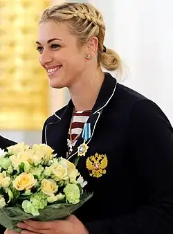 With the Russian youth national team she won the 2008 Youth World Championship.[6] A year later she came third in the 2009 Junior European Championship, and was top scorer at the tournament.[7] She also won silver medals at the 2010 U20 World Championship.[8]
