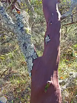 Plant communities include California oak woodland, riparian woodland, Douglas fir forest, chaparral, grassland, and marsh. The dominant plant community is the oak woodland, which has a canopy of coast live oak, Garry oak, black oak, Pacific madrone, bigleaf maple, and California laurel. Canyon live oak occurs in swales and creeks. In the oak woodlands, the dominant understory plants are native bunchgrasses, toyon, wild blackberry, coyote brush, and western poison-oak. The latter covers nearly one quarter of the understory in the park.[3] Douglas fir occurs in some of the steeper, cooler riparian zones and on north-facing slopes.