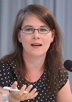 In 2009, Baerbock unsuccessfully ran for a place on her party's electoral list for the federal elections. In 2013, she was the Green Party candidate in the constituency of Potsdam – Potsdam-Mittelmark II – Teltow-Fläming II and also secured the leading spot on the party's electoral list for the State of Brandenburg.[20] Through the electoral list, she became a member of the Bundestag.[19]