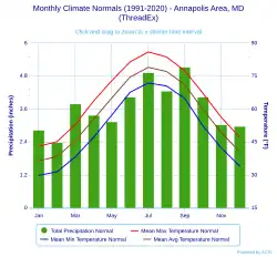 - ^ "Annapolis, Maryland, USA – Monthly weather forecast and Climate data". Weather Atlas. Archived from the original on June 29, 2019. Retrieved July 25, 2020.