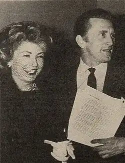 When Buydens met Kirk Douglas in Paris in 1953,[7] he was divorced from his first wife, Diana Dill, with whom he had two sons, Michael and Joel.[8] They worked on the film Act of Love, directed by Anatole Litvak, he as an actor and she as a publicist.[9] He offered her a job as his publicist, which she first refused, but eventually accepted, described by him later: "She finally agreed to work with me on a trial basis, making it clear our relationship would be strictly business".[5]