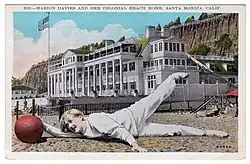 Built in 1929, Ocean House—later called simply the Beach House—was a hot spot on Santa Monica's Gold Coast in the 1930s and 1940s, as William Randolph Hearst and Marion Davies entertained Hollywood's elite at Davies' 5-acre (20,000 m2) estate.[2] Actress Colleen Moore is reported to have called Ocean House "the biggest house on the beach—the beach between San Diego and Vancouver".[3]