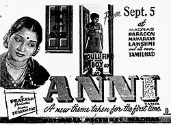 Anni (ⓘ, transl. Sister-in-law) is a 1951 Indian Tamil-language drama film directed by K. S. Prakash Rao. The film stars Master Sethu and G. Varalakshmi. It was released on 5 September 1951.[1]