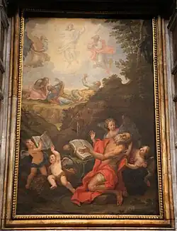 In 1697, Annibale frescoed the choir and the ceiling of the dome of the church of San Martino. An altar of Cathedral hosts a canvas depicting the Ecstasy of Saint Jerome, dated 1671. In the church and convent of Santa Margherita in Castelvecchio, owned by the Contrada of the Pantera, ha painted the ceiling fresco in collaboration with Giuseppe Nicola Nasini, while in 'Oratory of St. Anthony he painted altarpieces of St Bartholomew and St Sebastian. For the Certosa of Siena he painted a San Bruno. A fresco of the Meeting of Pope Gregory VII and Henry IV, painted in 1695, is exhibited in the Palazzo Publico of Siena. Other frescoes are in the Church of San Vigilio. As with the frescoes of Life of San Gerardo can be found in Oratorio of St. Louis and Gerard. In the church of Basilica of San Domenico is one of his canvases The Ecstasy of Saint Catherine of Siena. Other frescoes and altarpieces in the city were painted by him for the Church of Maria Santissima del Rosario, the Oratory of San Bernardino al Prato, the church of San Francesco.