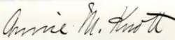 Annie MacMillan Knott (1 September, 1850 – December 20, 1941) was a practitioner and teacher in The First Church of Christ, Scientist. She was a student of Mary Baker Eddy, the founder of the religion, and served the church in various capacities including First Reader, Associate Editor of the Christian Science periodicals, member of the Bible Lesson Committee, one of the first women on the Christian Science Board of Lectureship, Trustee under the Will of Mary Baker Eddy, and the first woman to become a member of the Christian Science Board of Directors.[1][2]