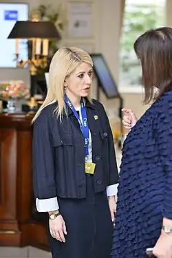 The Speaker of the House of Representatives is the second-highest office in the Cyprus after the President.[16] In her first week in the role, Demetriou reduced the number of her personal bodyguards to 5, down from the 8 of her predecessor Adamos Adamou and 15 of his predecessor Demetris Syllouris.[17]