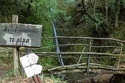 At an altitude of 1,100 meters and on the highest edge of the village, an artificial environmental settlement has been built by the local forestry authority with funding from the Ministry of Agricultural Development. It is known as dasiko horio (literally translating to forest village) by the locals. Its construction was part of the Ministry's broader effort to create infrastructure in remote mountainous forest regions of Greece, to facilitate short-term visitor stay in relative comfort close to the forest, for recreational and educational purposes.[47] It consists of 20 wooden residences that are spread on an area of 29 acres and can accommodate up to 80 guests.[48]