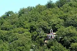 The mountain top of Saint Elias, a name often given to mountain tops in Greece, rises above the village. Here, on 20 July, residents gather in the homonymous chapel, at an altitude of 1.280 meters and perform a liturgy. Due to its high altitude of 1.390 meters, it is also being used as a telecommunications hub for the wider region, with antennas transmitting signals for OTE, television, radio and mobile telephony. It is accessible by a 4 km long road that starts from Doliana.[20][21]
