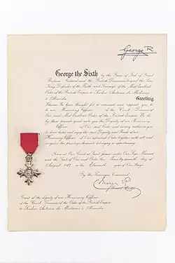 • OBE - Honorary Officer of the Civil Division of the Most Excellent Order of the British Empire (1947)