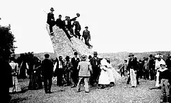 The site had for a long time been one of pilgrimage for the local population, it being believed that newly married women who slid down the side of the dominant stone would then be able to conceive. These pilgrimages came to an end in 1942 when the landowner forbade access. The dominant stone was found shattered into numerous pieces in June 2010: it remains unclear whether this was caused by vandalism or was the result of detonations during construction of the new A9 Motorway, which passes close to the dolmen.[5][6]
