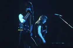 Dickinson remained in the band for another year, recording two studio albums with them—Head On and Shock Tactics.[30] However, Samson soon ran into difficulties with their record label, Gem, who went out of business and failed to finance their European tour in support of Iron Maiden.[32] The band were turned over to RCA, which began neglecting the group, and so they promptly fired their management team and the resulting injunction meant that their equipment was reclaimed and they could not be paid for their concert performances.[32] The band's last gig was at Reading Festival, after which Dickinson was approached by Iron Maiden's manager, Rod Smallwood, who asked him to audition to be their new lead vocalist.[33]