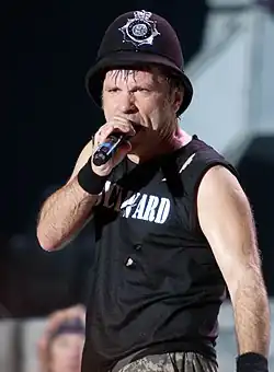 Paul Bruce Dickinson (born 7 August 1958) is an English singer who is best known as the lead vocalist of the heavy metal band Iron Maiden. Dickinson has performed in the band across two stints, from 1981 to 1993 and from 1999 to the present day. He is known for his wide-ranging operatic vocal style and energetic stage presence.