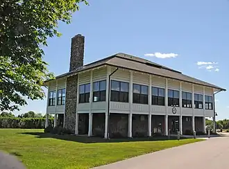 The Anthony–Kinney Farm is a historic farm and resort complex at 505 Point Judith Road in Narragansett, Rhode Island. The property, now a town-owned recreation area known as Sunset Farm, saw agricultural use for over 300 years, and was converted into a private resort around the turn of the 20th century. The Point Judith area was among the first in Rhode Island to be purchased from the local Narragansett people, in 1657. The farm was acquired by James E. Anthony in 1850, who sold it to Francis Kinney in 1897. Kinney maintained much of the land in agricultural use, but built an extravagant resort complex, including a distinctive East Indian bungalow as a clubhouse, and built a private nine-hole golf course. Kinney died in 1908, and the property was owned by the Chase family until 1991, when most of it was purchased by the town. It is managed by the town as an active farm, and the restored clubhouse is available for rent as function space.[2]