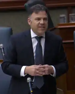 Anthony Leardi MPP is a Canadian politician, who was elected to the Legislative Assembly of Ontario in the 2022 provincial election. He represents the riding of Essex as a member of the Progressive Conservative Party of Ontario.[1] He is the first Progressive Conservative member for the area since 1959. Previously, Leardi served as the Deputy Mayor of Amherstburg, Ontario.[2]