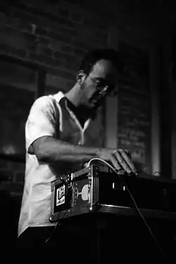 Pateras has collaborated with various musical artists.[45] He worked in bands: North of North,[46] tētēma, Thymolphthalein,[47] PIVIXKI,[48][49] Beta Erko[50] and Pateras/Baxter/Brown.[51] He has formed duos with: Erkki Veltheim,[52][53] Valerio Tricoli (as Astral Colonels),[54] Jérôme Noetinger[55] and Rohan Drape.[56] Pateras has also collaborated with eRikm,[57] Stephen O'Malley,[58] Anthony Burr[59][60] and Robin Fox.[61]