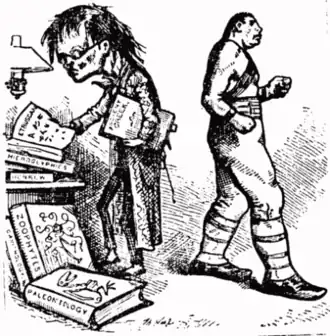 In U.S. history, the advocacy and acceptability of anti-intellectualism have varied, in part because the majority of Americans lived a rural life of arduous manual labor and agricultural work prior to the industrialization of the late nineteenth century. Therefore, academic education in the Greco–Roman classics was primarily perceived as having impractical value, and the bookish scholar deemed an unprofitable occupation. Yet, Americans of the nineteenth century were generally literate people who read Shakespeare for intellectual pleasure and the Christian Bible for emotional succor; thus, the ideal American was a literate and technically skilled man who was successful in his trade, ergo a productive member of society.[21] Culturally, the ideal American was the self-made man whose knowledge derived from life-experience, not an intellectual man whose knowledge of the real world was derived from books, formal education, and academic study; thus, the justified anti-intellectualism reported in The New Purchase, or Seven and a Half Years in the Far West (1843), the Rev. Bayard R. Hall, A.M., said about frontier Indiana:[19]