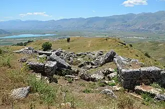Antigonia had sided with the Macedonians, and so when the Romans were victorious over the Macedonians in 167 BC, Consul Aemilius Paullus ordered 70 towns in Epirus to be set on fire, including Antigonia, which was never rebuilt.[4] Antigonia is mentioned by the ancient authors Polybius,[5] Livy,[6] Pliny the Elder,[7] and Ptolemy.[8]