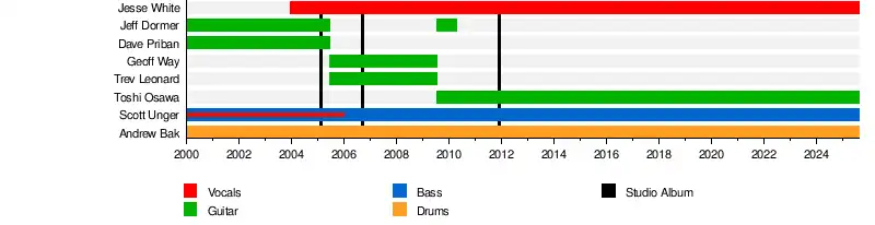 In 2005, Jeff Dormer and Dave Priban left the band and were replaced by guitarists Trev Leonard and Geoff Way. The band recorded their second album Eleutheria which was released in 2006 under the Italian label Cruz Del Sur.[9][10] Eleutheria was recorded at Larry Anschell's Turtle Recording. Larry, who has produced for Alice in Chains, Pearl Jam and Soundgarden, mixed the album. It was mastered in Gothenburg, Sweden by Göran Finnberg (In Flames, Soilwork).[11]