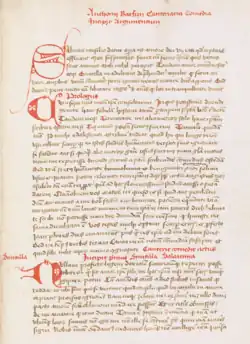 Cauteriaria survives in at least 18 manuscripts.[5] The play Fraudiphila of Antonio Cornazzano was partially inspired by Cauteriaria.[6] Peter Luder brought a copy of the play to the University of Heidelberg between 1456 and 1460, where it probably inspired Johannes Reuchlin's Scaenica progymnasmata.[7]