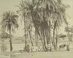 Antonio Beato went to Cairo towards the end 1859 or early 1860 and spent two years there before moving to Luxor where he opened a photographic studio in 1862 (until his death in 1906) and began producing tourist images of the people and architectural sites of the area.[7] In the late 1860s, Antonio was in partnership with the French photographer, Hippolyte Arnoux.[8] Beato's images of Egypt were distinctly different from those of other photographers working in the region. Whereas most photographers focussed on the grandeur of monuments and architecture, Beato concentrated on scenes of everyday life.[9]
