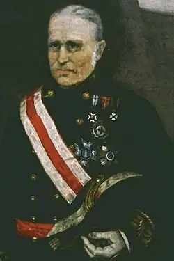 The Mazarrasas held firmly reactionary views. The older brother of Antonio's paternal grandfather, José de Mazarrasa Cobo de la Torre (1772-1858), was among leaders of Voluntarios Realistas and rose to highest positions in the legitimist army during the First Carlist War, nominated mariscal de campo.[28] Antonio's grandfather held minor roles in Carlist structures of the late Isabelline period,[29] while his relative José Tomás de Mazarrasa served as bishop of Ciudad Rodrigo and Filipopolis.[30] The young Antonio inherited their political outlook; already during his academic years he signed letters protesting secularization in education,[31] and then he married a girl from the vehemently Carlist family. Initially he was active in technically non-political organizations flavored with conservative spirit, e.g. in the late 1880s he was noted in Milicia Cristiana of Santander.[32] However, Mazarrasa engaged also in charity[33] and education, e.g. as member of Real Sociedad Económica Cantábrica de Amigos de País.[34] In 1892, he became president of Círculo Tradicionalista in Santander.[35] Mazarrasa cultivated also personal cultural links.[36]
