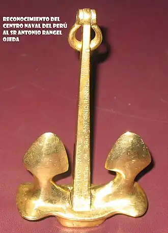 Award given by the Centro Naval del Perú to Antonio Rangel Ojeda in recognition for his contribution to the Badminton in Peru