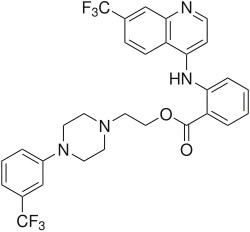- ^ a b Manoury PM, Dumas AP, Najer H, Branceni D, Prouteau M, Lefevre-Borg FM (May 1979). "Synthesis and analgesic activities of some (4-substituted phenyl-1-piperazinyl)alkyl 2-aminobenzoates and 2-aminonicotinates". Journal of Medicinal Chemistry. 22 (5): 554–9. doi:10.1021/jm00191a017. PMID 458805.