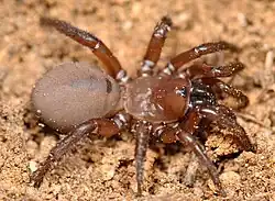 Antrodiaetus is a genus of American and Japanese folding trapdoor spiders first described by Anton Ausserer in 1871.[2] The name is a combination of the Greek "antrodiaitos" (αντροδιαιτος), meaning "living in caves", "antron" (αντρον), meaning "cave", and "diaita (διαιτα), meaning "way of life, dwelling".[3]
