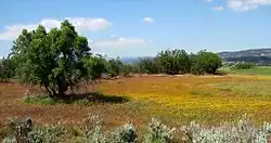 Anza is a census-designated place in Riverside County, California, in the Anza Valley, a semi-arid region at a mean elevation of 3,921 feet (1,195 m) above sea level. It is located 13 miles (21 km) south of Idyllwild,[3] 32 miles (51 km) east-northeast of Temecula, 40 miles (64 km) southwest of Palm Springs, and 90 miles (140 km) northeast of San Diego, being traversed by State Route 371. Anza is on the Pacific Crest Trail and the Juan Bautista de Anza National Historic Trail.[4][5] The population was 3,075 at the 2020 census.
