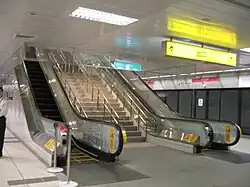 The station is a two-level, underground station with an island platform and four exits.[2] It is 217 meters long and is located at the intersection of Bo-ai 1st Rd. and Dashun Rd.[3]