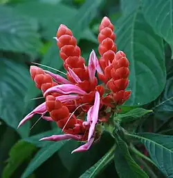 Aphelandra sinclairiana[1] is a plant species commonly called coral aphelandra, orange shrimp plant, Panama queen[2] or Sinclair's aphelandra.[3] It is a shrub up to 3 m (10 feet) high, native to Central America, specifically Panama, Costa Rica, Honduras and Nicaragua. It is also cultivated in warm locations elsewhere, with pink, red, orange, or red-violet flowers and bracts.[2]