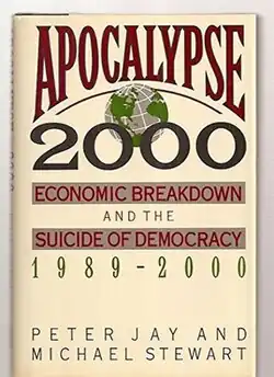 Apocalypse 2000: Economic Breakdown and the Suicide of Democracy (also known as Apocalypse 2000: Economic Breakdown and the Suicide of Democracy, 1989-2000 or Apocalypse 2000) is a 1987 novel by English economists Peter Jay and Michael Stewart.