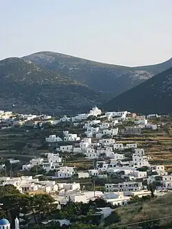 Apollonia is located on top of three hills in the inner part of Sifnos. Traditional cycladic architecture is dominant in the village.[2] People born in Apollonia include satyric poet and journalist Kleanthis Triantafyllopoulos[4] and Gregory VII of Constantinople.[5] In the central square of the village there is a folklore museum.[2] The village also has plenty of churches, something common in the whole island.[2]