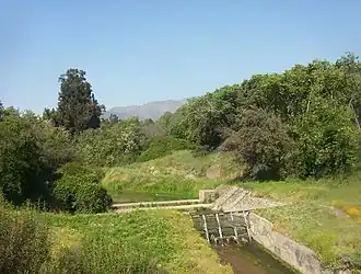 Apoquindo (Runasimi Apuk-kintu flowers for the deity) is the name of a river and pre-Columbian settlement located east of the city of Santiago de Chile, at the foot of the foothills, in the present town of Las Condes. This settlement later became known as the Pueblo de Indios in place names Apoquindo and transferred to an estate, the Mount Apoquindo, the Apoquindo Waterfall, the Apoquindo Avenue, to the district San Carlos de Apoquindo, the Apoquindo College and other geographical landmarks and urban community.