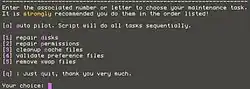 AppleJack was a command-line interface for Mac OS X that provided a simplified user interface for single user mode system repairs. It allowed for permission repair, disk repair, cache cleaning, validation of preference- and property list files, and removal of swap files on a boot drive, without needing a separate startup disk.