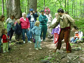 Local folklore recounts Ottawa Chief Pontiac's burial on the island.[7] To test the validity of these accounts, a limited excavation was conducted on a site the islanders referred to as "Pontiacs Mound" during a 2008 excavation. The results of the test suggested that it "appears to be only one of several rather level promontories extending without discernible interruption from the central plateau of the island toward northwestern shore. While additional deep testing may reveal other information, at this time the most appropriate hypothesis is to regard all of these adjacent landforms as non-cultural portions of the higher soils, dissected by centuries [if not millennia] of natural headward erosion and downslope weathering."[8]