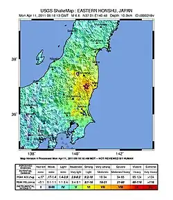- ^ "Magnitude 7.1 – near the East Coast of Honshu, Japan". United States Geological Survey. 11 April 2011. Archived from the original on 24 April 2011. Retrieved 2011-04-23.