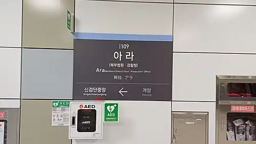 Ara station (Korean: 아라역) is a Line 1 subway station of the Incheon Subway in Seo-gu, Incheon, South Korea. It opened on June 28, 2025.[1]